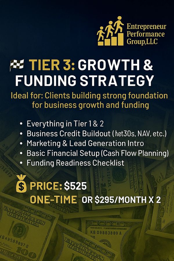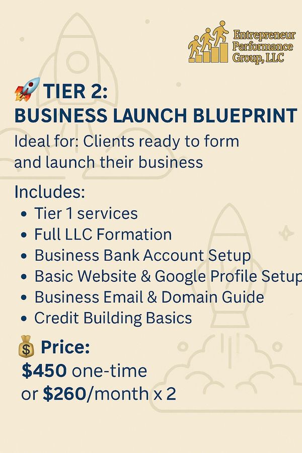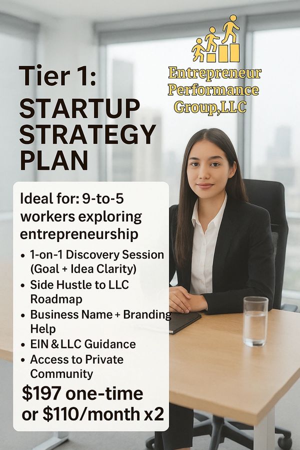 The Entrepreneur Performance Group, LLC was created to help individuals break free from financial limitations and build purpose-driven businesses that lead to real independence, ownership, and generational wealth. We serve as a trusted resource for aspiring entrepreneurs, 9-to-5 workers ready to transition, and established business owners who need structure, strategy, and support to reach the next level.
